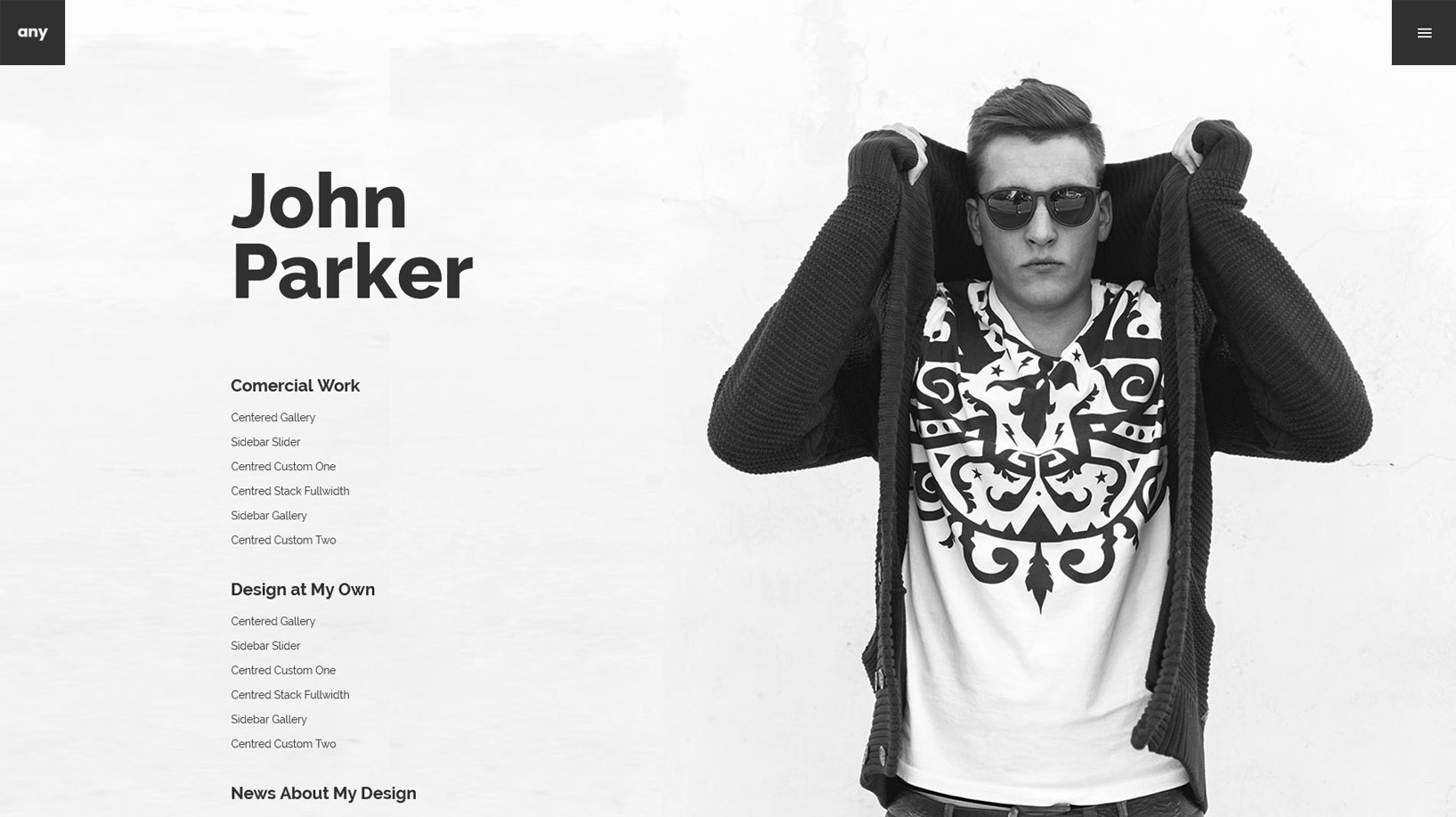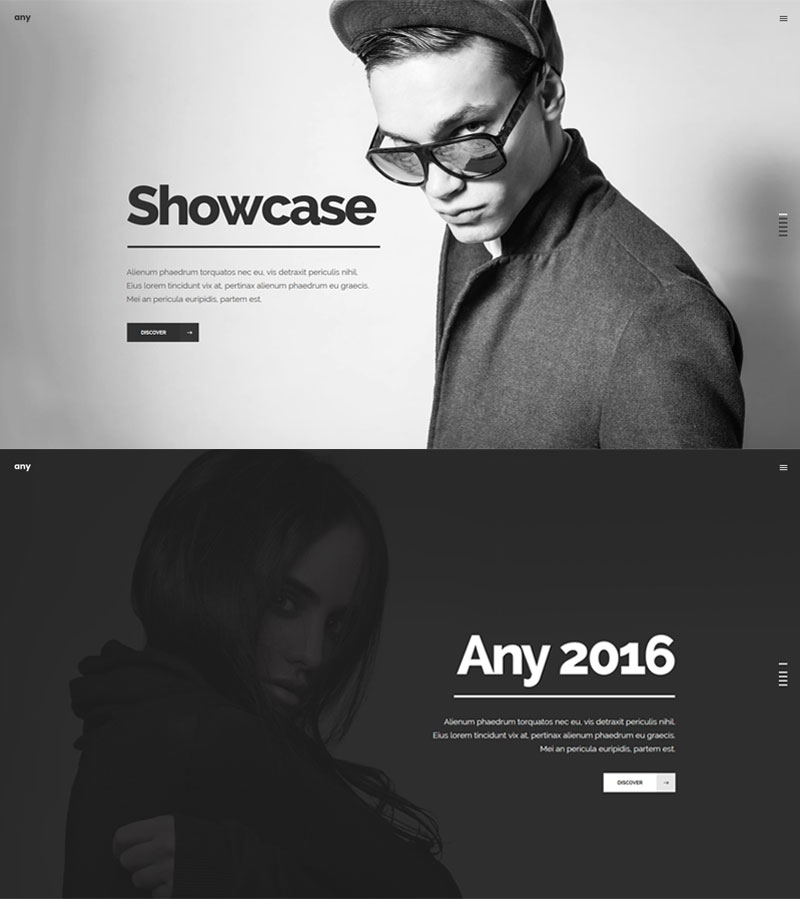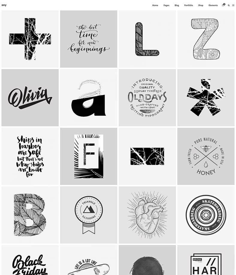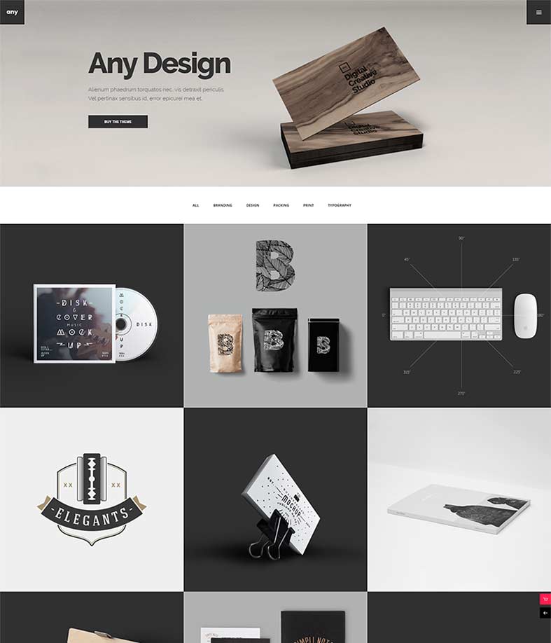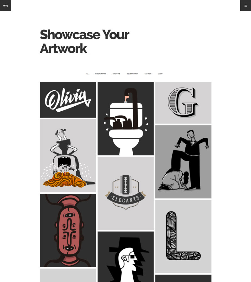 Any comes with a collection of four customizable portfolio list templates and two portfolio slider types, letting you decide exactly how you would like to showcase your projects.