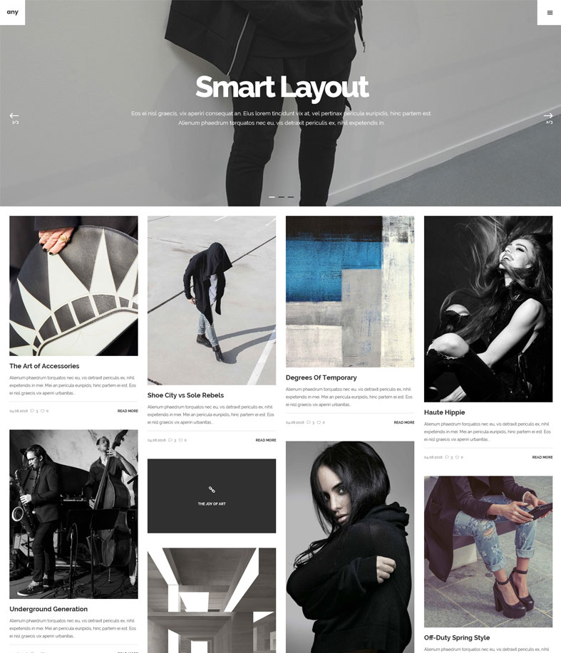 Loaded with tons of awesome and practical features, Any puts creative power in your hands. Quickly and easily customize any aspect of your website with just a few clicks.
